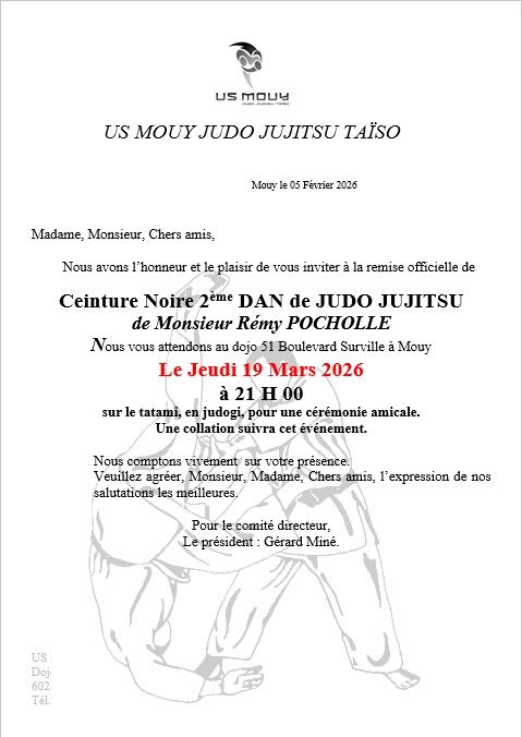 Remise de Ceinture noire 2ème Dan Pocholle Rémy